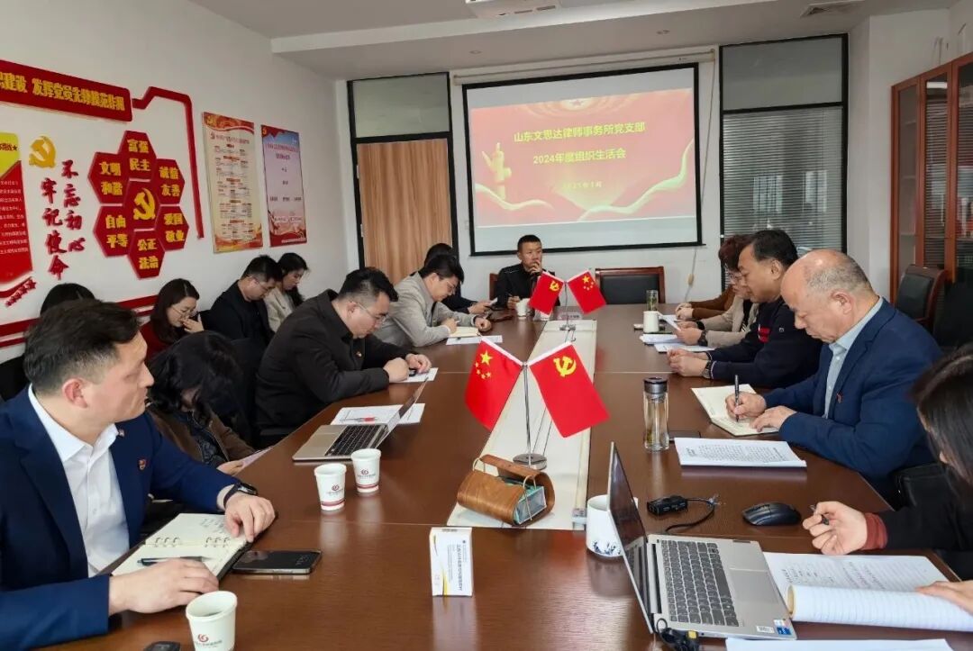 2025年3月22日,山东文思达律师事务所党支部召开2024年度组织生活会。济宁市律师行业党委副书记、律师协会会长朱玉冰到会指导,律所领导列席会议,党支部全体党员参加了会议。